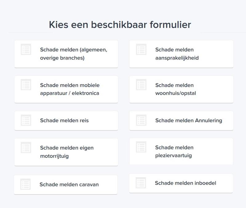 Er zijn formulieren voor schademelden, waardemeters, aanvraag, nazorg, zorgplicht, enquêtes en getuigenverklaringen. U heeft daarnaast de mogelijkheid om eigen formulieren te (laten) bouwen.